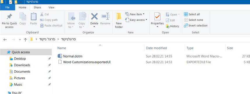 5. נסגור את קובץ הוורד וניכנס לתיקיות המותקנות במחשב שלנו לפי הנתיב הבא: C:\Users\User\AppData\Roaming\Microsoft\Templates